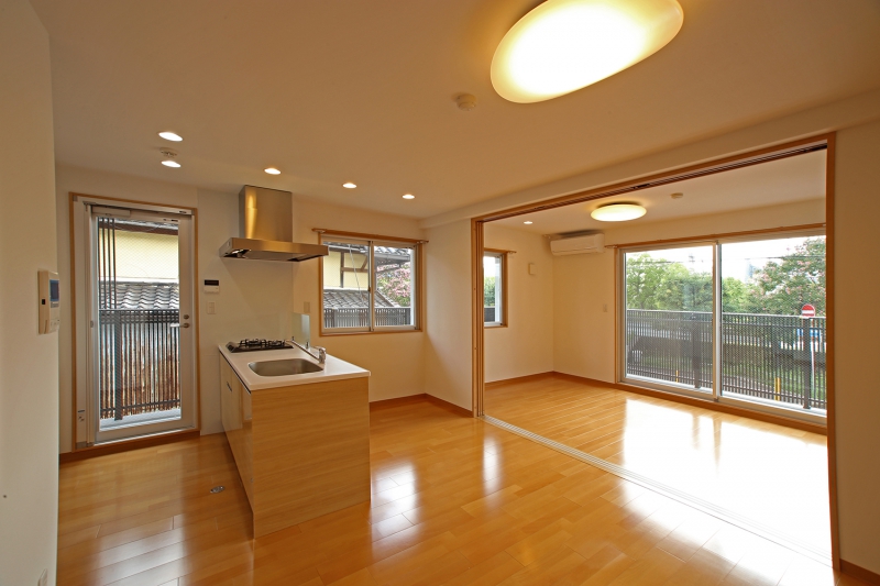和のテイストを取り入れた京都らしい物件に仕上げました。1階には土間を作り自転車を入れるなど使う人の想像力を刺激する物件としています。