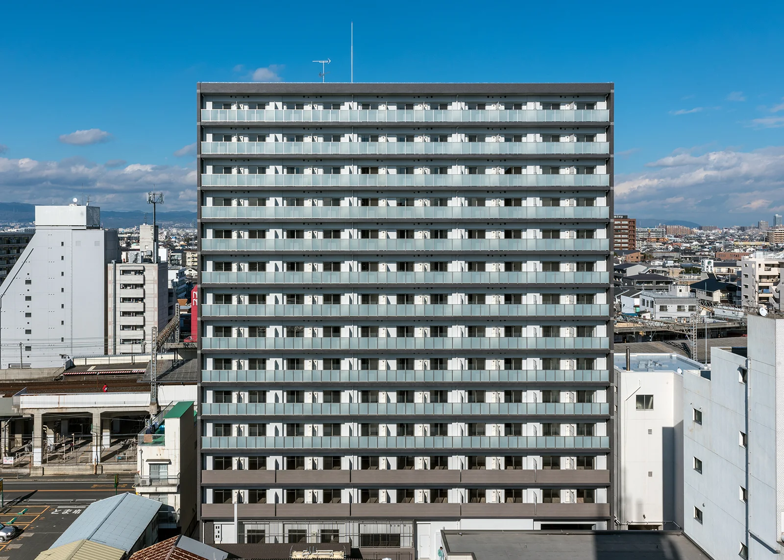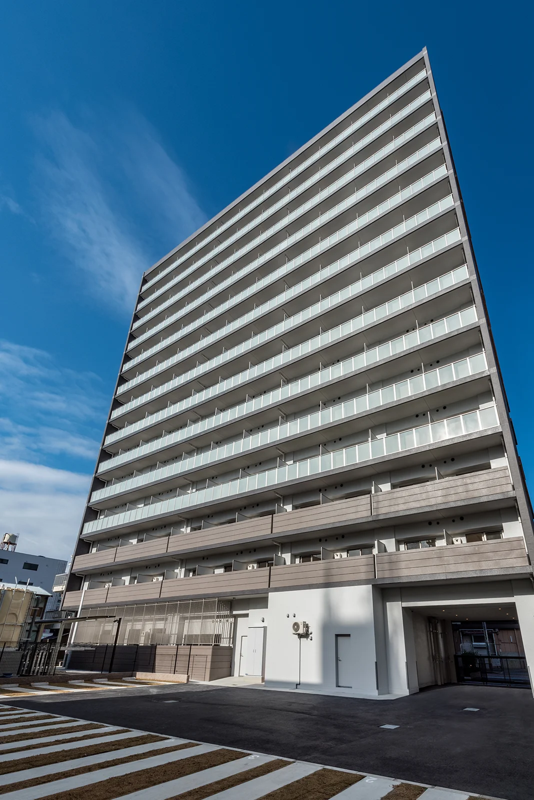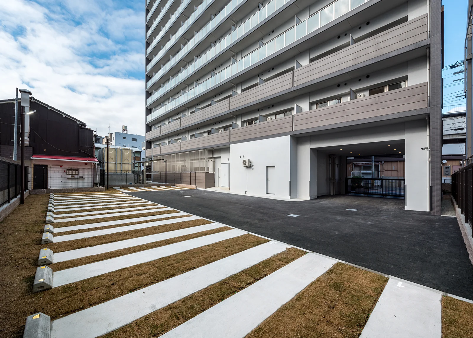 京阪本線大和田駅から徒歩3分、総戸数145戸のこの物件は、計画中に「1棟全体を借りたい」というご依頼をいただいたため、すべて社宅としてご利用いただくことを想定した開発計画・設計を行っています。オートロックはもちろん、多数の宅配ボックス、1階部分に通常のマンション等には無い集会場を設置、また通常は屋外に設置されることの多い駐輪場をセキュリティの観点から屋内に配置し、オートロック式となっています。