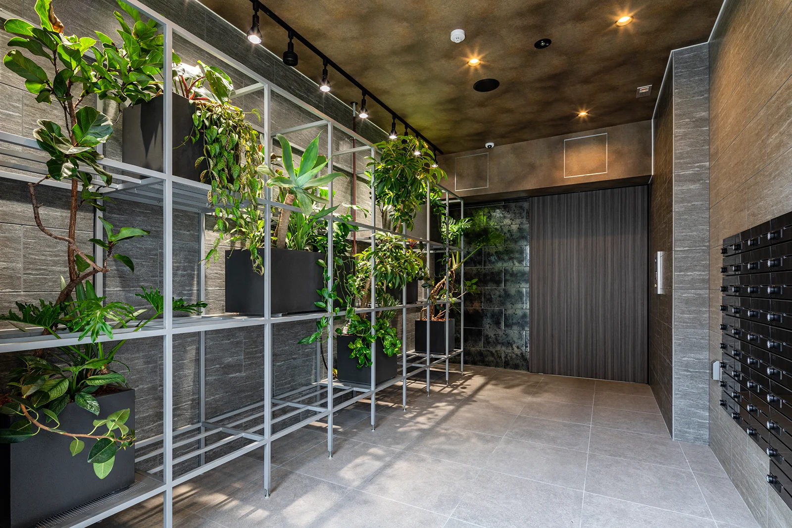 外回りやエントランス部分にGX(グリーントランスフォーメーション)の考え方を取り入れております。海外にてランドスケープ・アーキテクトを学んだ弊社社員の発想を活かし、1F部分の植栽に多種類のグリーンを取り入れて設計していることが特徴です。また、外装にタイル等を用い、より高級感を演出しています。 住居部分は入居者様のニーズを最優先に考え、使いやすく、住みやすいことを重視しながらも単調にならないよう、部屋の1面にだけデザインクロスを施すなどの工夫も行っています。