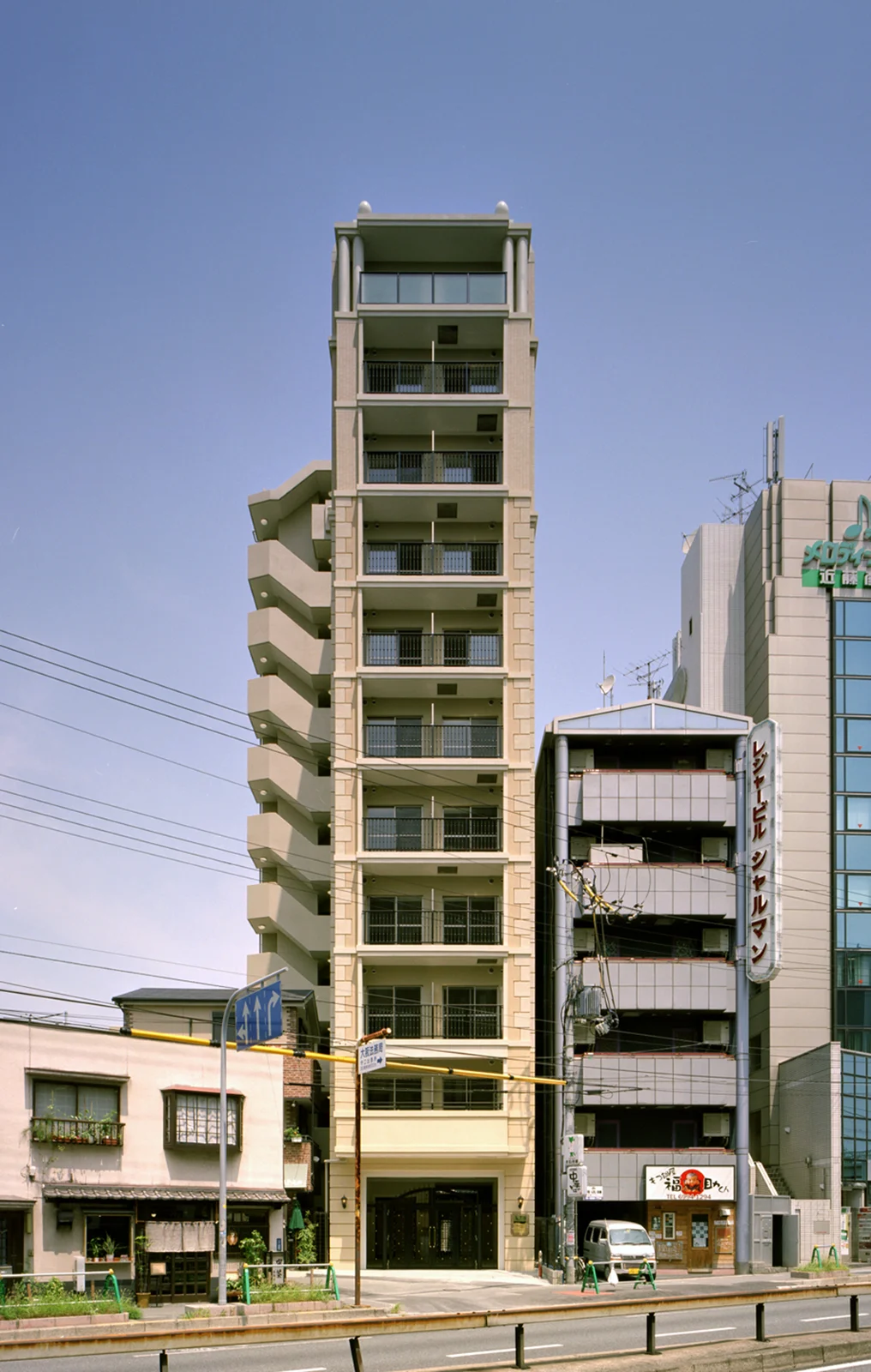 現場は幹線道路の交差点に面しており、間口も狭く搬出入車両も制限された上に敷地いっぱいに建築物が配置されていたためクレーンも設置できないような状況でしたが、近隣の皆さんの理解や協力もあり、斬新な建物ができました。