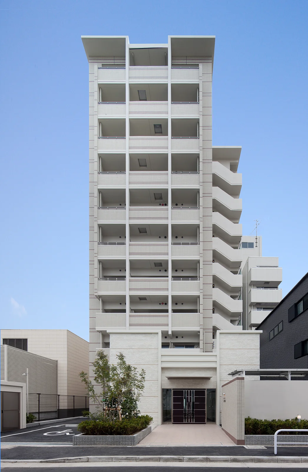 地下鉄駅前のデザイナーズ物件です。各階ごとに違ったデザインの部屋を用意し、最上階にはカーサオロビアンコ研究会による特別室二部屋も配されグレードの高い建物に仕上がりました。