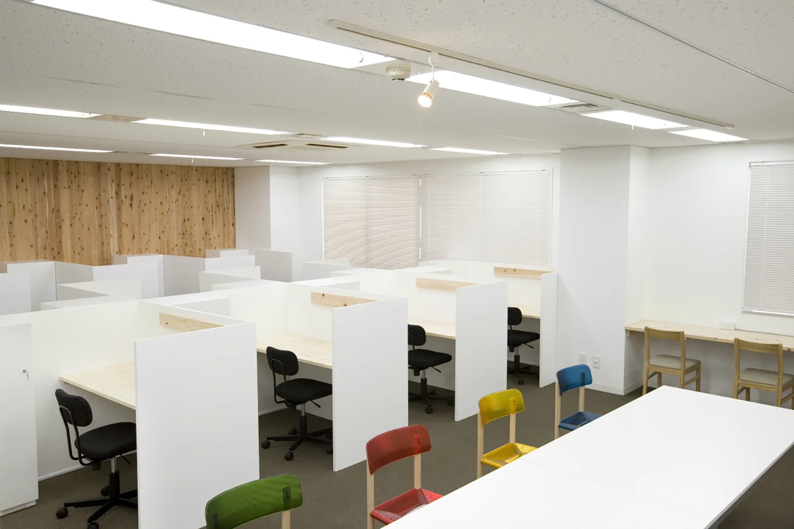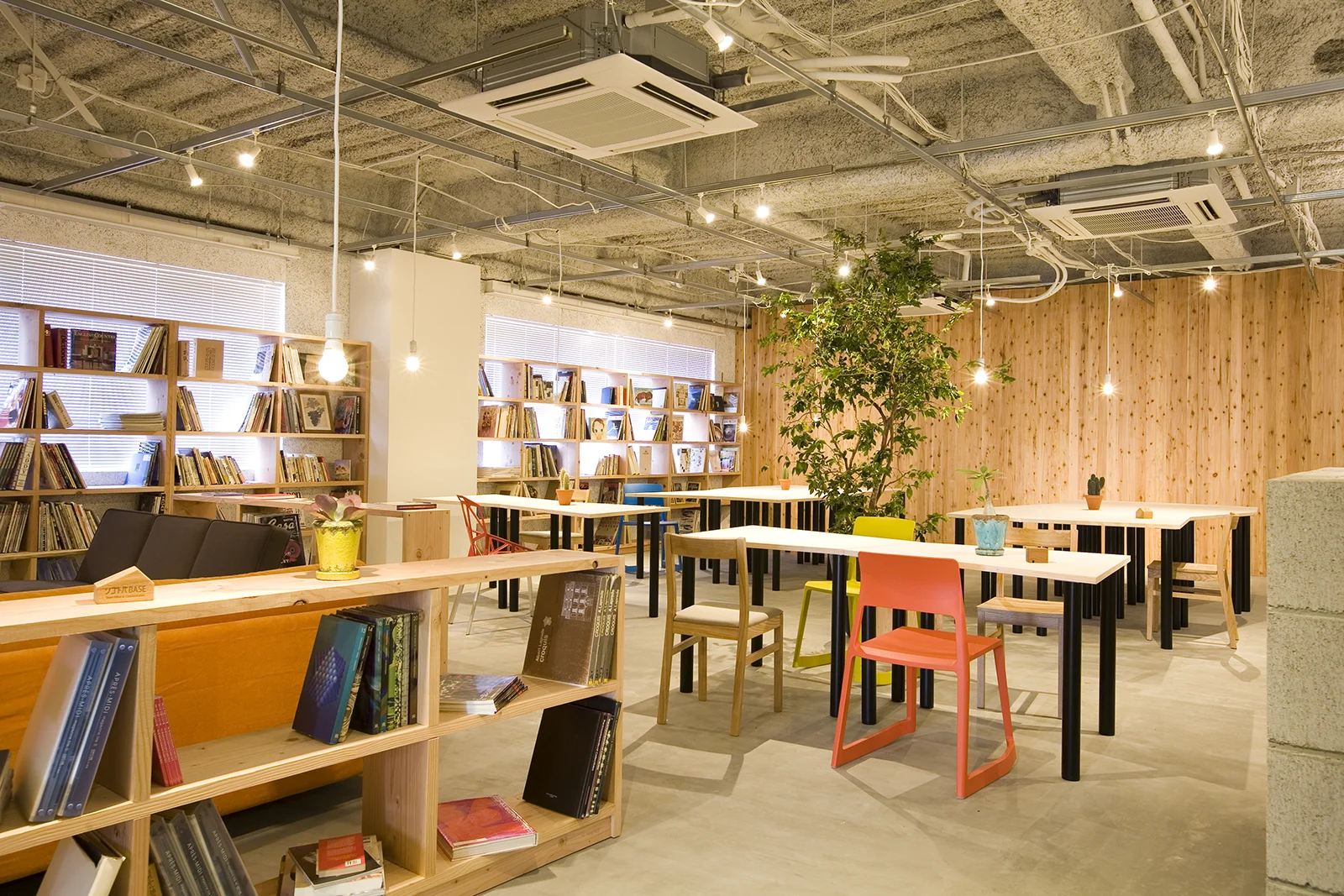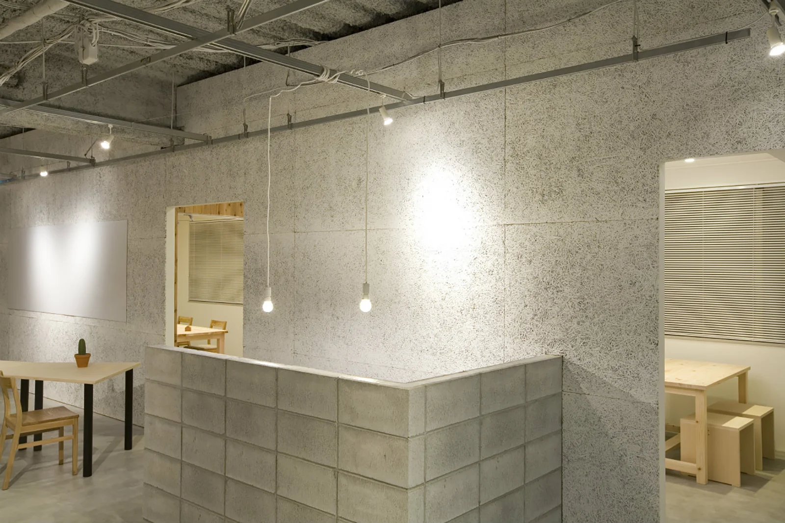 北堀江の商業ビルの3階にオープンしたクリエーターむけのシェアオフィス。 もともと事務所として使用していた階をシェアオフィスへと仕様変更しました。 ブロックを使用したり、壁材に木を利用したりして、シンプルな中にも温かみのあるデザインに仕上がっています。