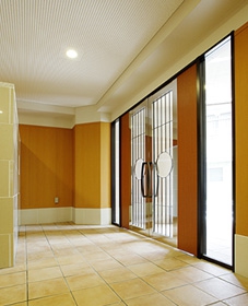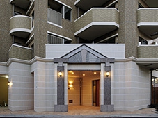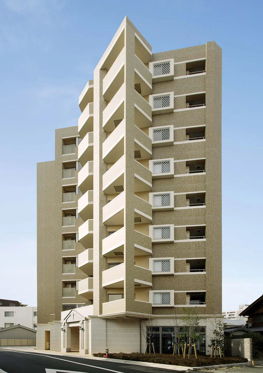 前面道路が非常に狭く、民家が多いため朝一の搬入には苦労しました。 それと、上空には高圧線が横断しており、クレーンの使用や、上階での材料の運搬には、安全に対して非常に留意しました。総タイル貼りで、周りに調和しながらも目立つ建物となりました。
