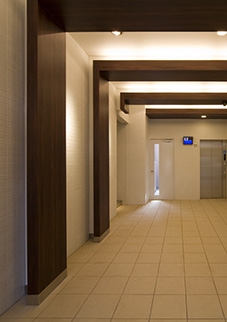 工期が短く、敷地形状がイビツであった事と、隣接建物・道路境界に接近した配置であり、各規制もあり資材の搬出入には、細心の注意が必要でした。