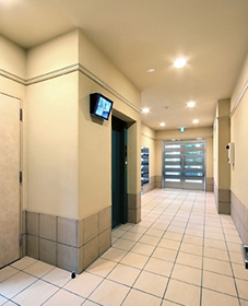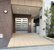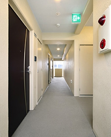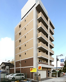上品で柔らかなイメージの外観で、前面道路(国道)から非常に目立つ建物です。内装は各フロアーごとにカラープランを変えて、入居者の選択肢を拡げています。